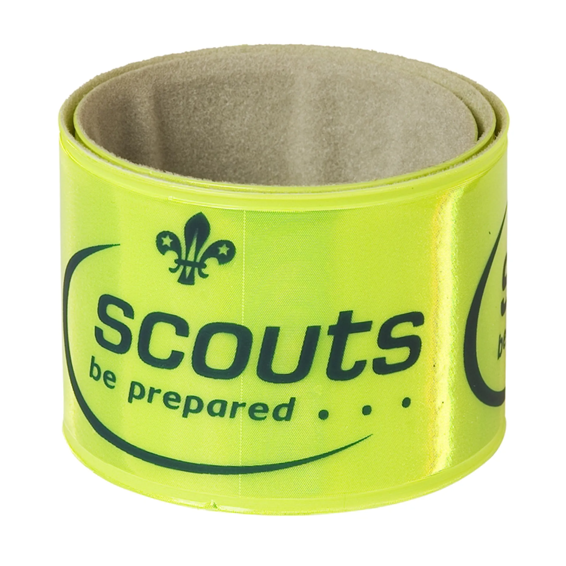 A youths' Scouts reflective Hi-Viz armband that will wrap itself round your arm, wrist or ankle so that you can be seen more readily in a light beam.
