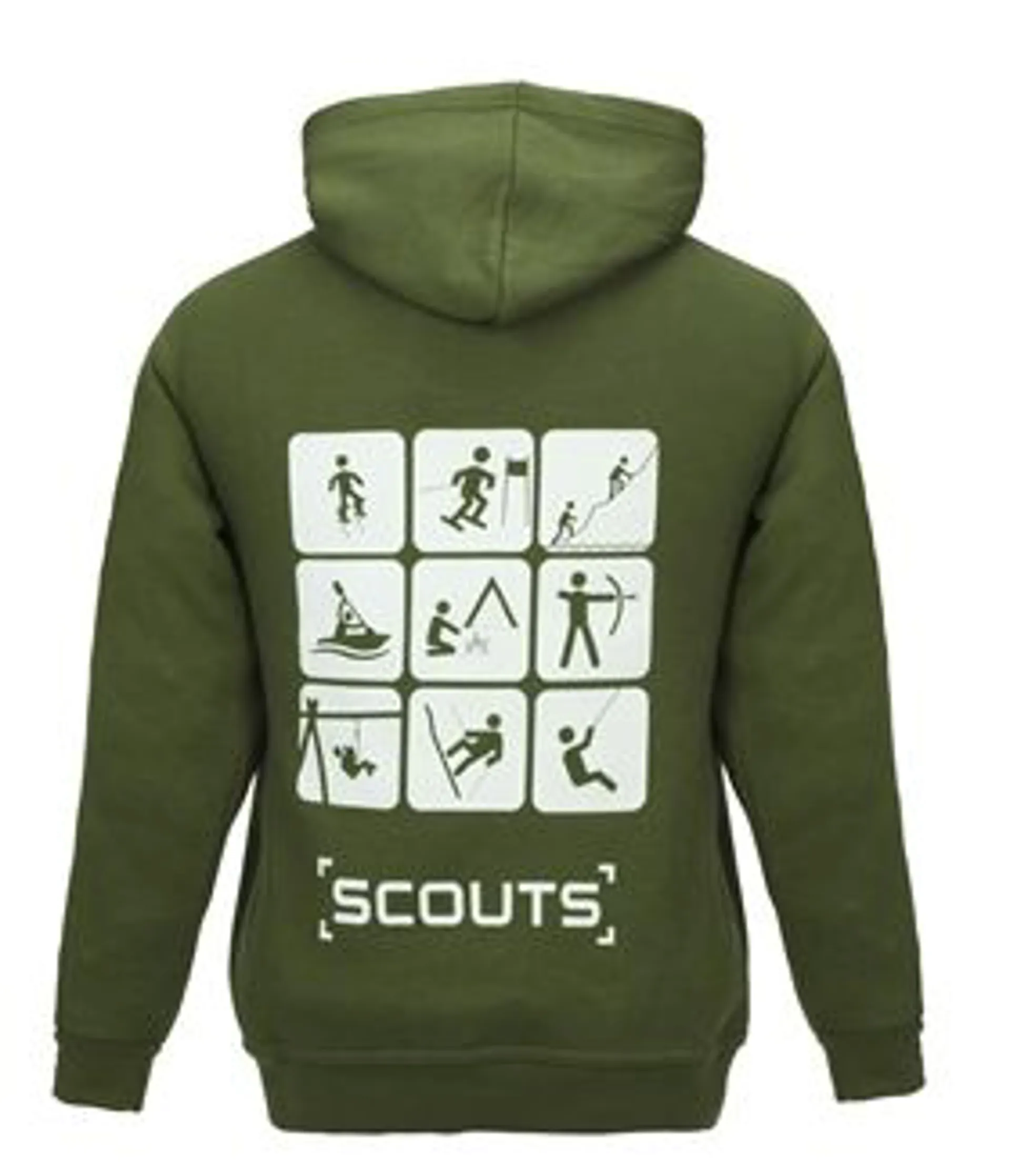 The Scout Section Hoodie is perfect for wearing round camp or in a Scout Hut, when uniform is not required. With handwarmer pockets and a hood, this attractive and fun design helps highlight the many exciting things that Scouts get up to.